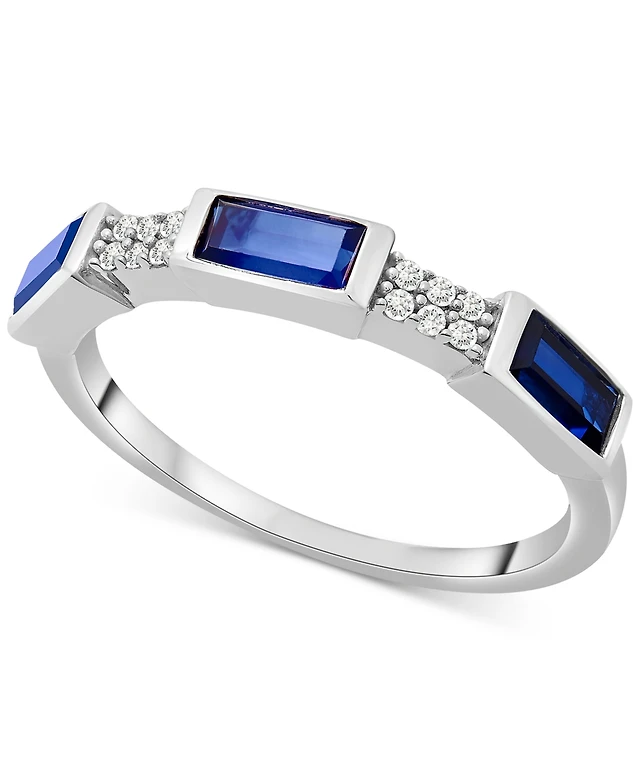 Lab-Grown Blue Sapphire (7/8 ct. t.w.) & Diamond (1/20 ct. t.w.) Ring in Sterling Silver (Also in Lab-Grown Pink Sapphire & Blue Topaz)