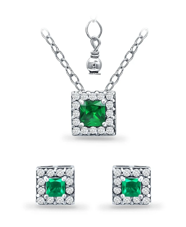 Macy's Lab-Grown Emerald (3/4 ct. t.w.) & White Sapphire (1/6 Earring 14k Gold Over Sterling Silver (also Ruby Sapphire)