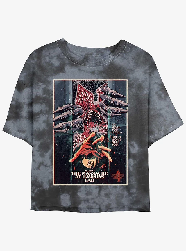 Stranger Things X Butcher Billy The Massacre At Hawkins Lab Mineral Wash Womens Crop T-Shirt
