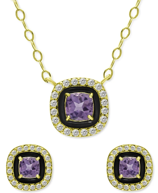 3-Pc. Set Amethyst (2-1/8 ct. t.w.) & Lab-Grown White Sapphire (1/3 ct. t.w.) Heart Ring, Pendant & Bracelet in 14k Gold-Plated Sterling Silver (Also
