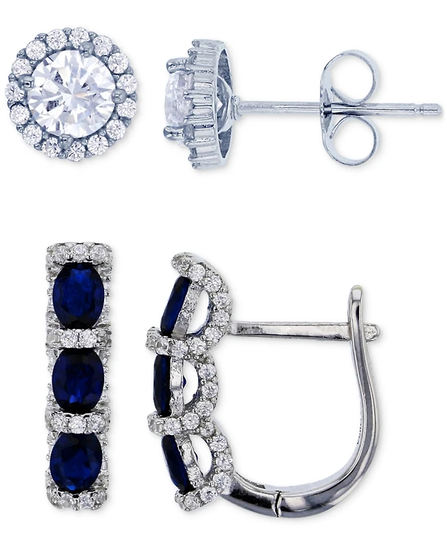 2-Pc. Set Lab-grown White Sapphire (5/8 ct. t.w.), Garnet (1/20 ct. t.w.) & Citrine Accent Huggie Hoop Earrings in 14k Gold-Plated Sterling Silver