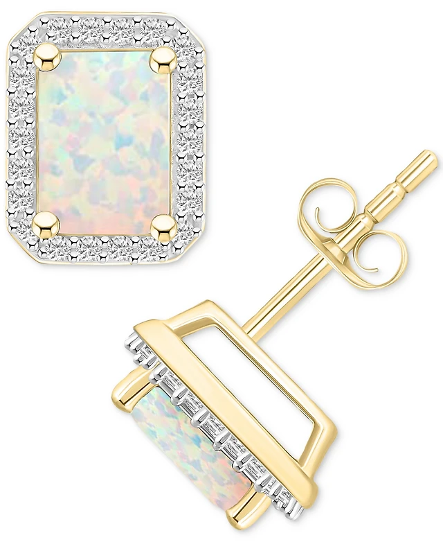 Gemstone & Created White Sapphire Halo Stud Earrings (1/4 ct. t.w.) 10k Yellow Gold