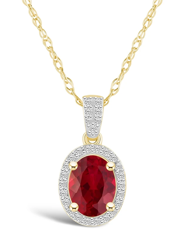 Macy's Lab Grown Sapphire (1-1/2 ct. t.w.) and Lab Grown White Sapphire (1/6 ct. t.w.) Halo Pendant Necklace in 10K Yellow Gold