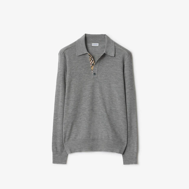 Long-sleeve Wool Polo Shirt in Grey - Men | Burberry® Official