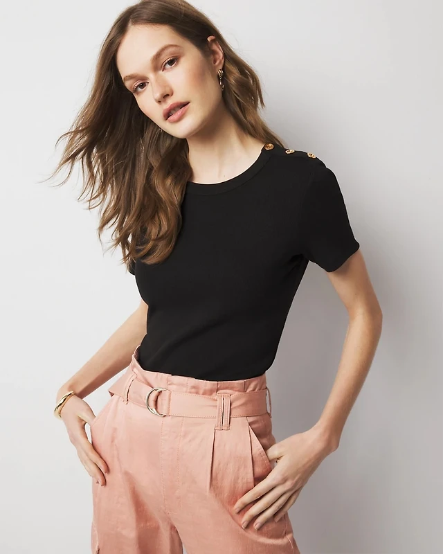 WHBM FORME™ Ribbed Stretch Button Shoulder Tee