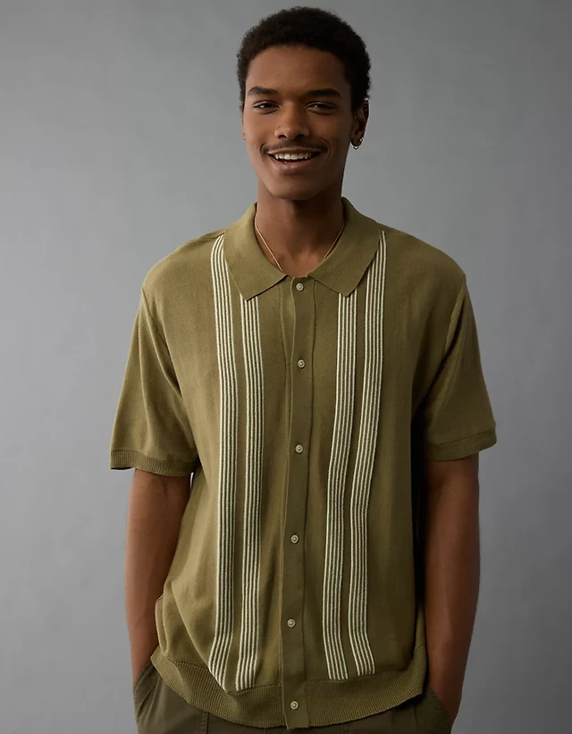 AE Weekend Cable Knit Button-Up Sweater Polo Shirt