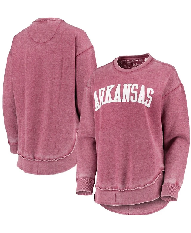 Women's Cardinal Arkansas Razorbacks Vintage-Like Wash Pullover Sweatshirt