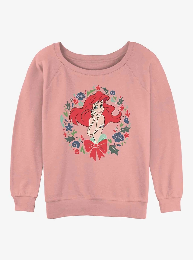 Disney The Little Mermaid Festive Ariel Wreath Womens Slouchy Sweatshirt