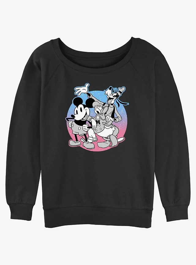 Disney Mickey Mouse Classic Friends Womens Slouchy Sweatshirt