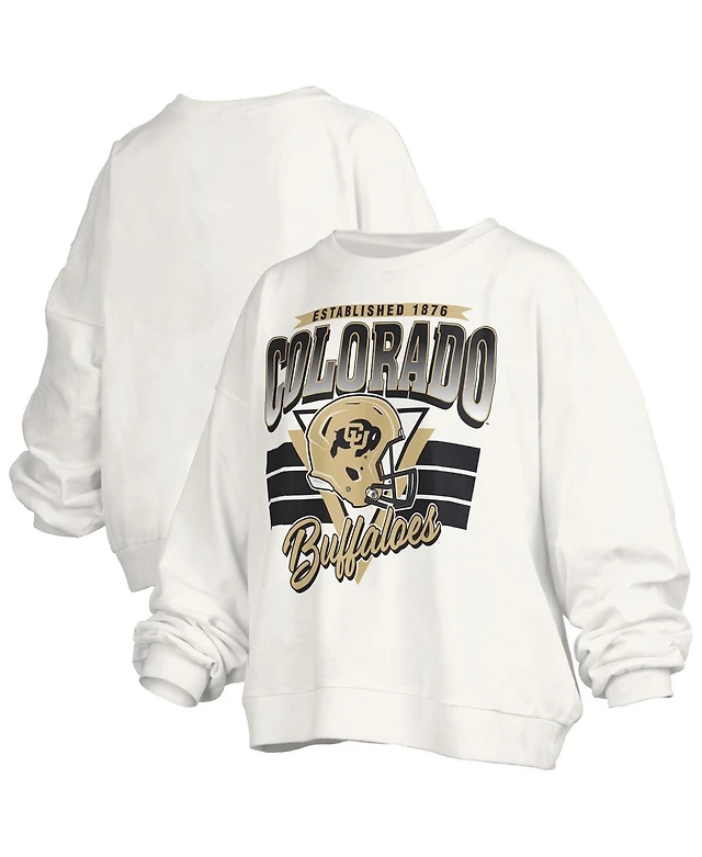 Pressbox Women's White Colorado Buffaloes Oversized Janice Retro Waist-Length Pullover Sweatshirt