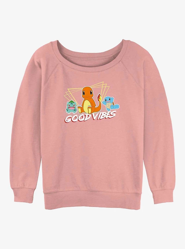 Pokemon Good Vibes With Charmander, Bulbasaur & Squirtle Womens Slouchy Sweatshirt