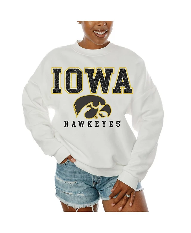Gameday Couture Women's White Ohio State Buckeyes Premium Fleece Drop Shoulder Oversized Pullover Sweatshirt