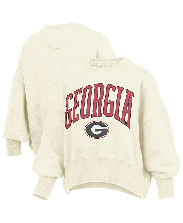 Pressbox Women's Natural Georgia Bulldogs Oversized Waist-Length Crewneck Sweatshirt