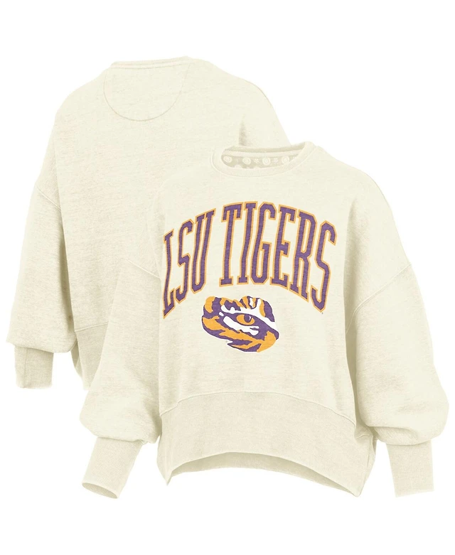 Pressbox Women's Natural Lsu Tigers Oversized Waist-Length Crewneck Sweatshirt