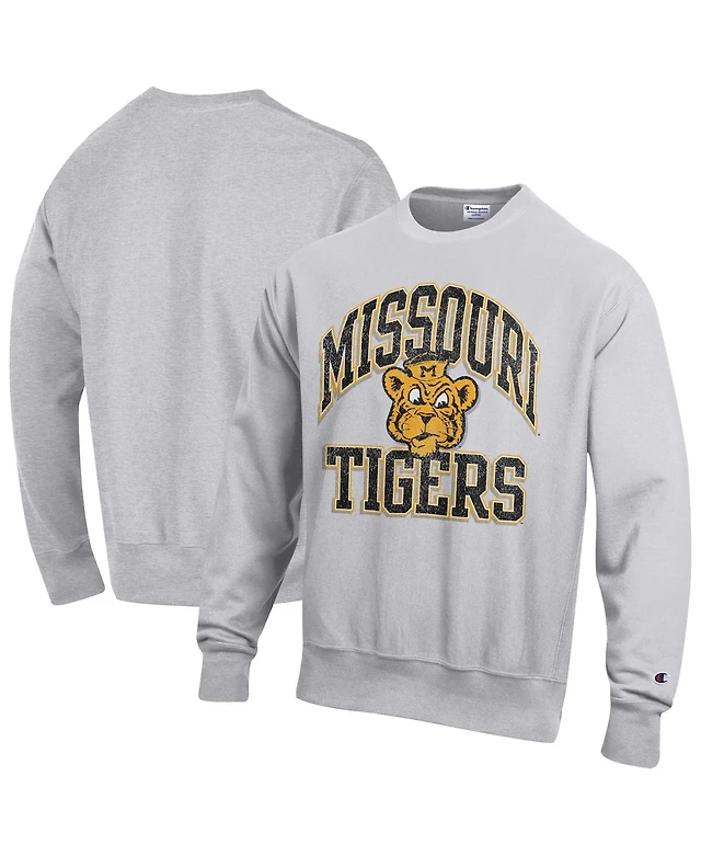 Champion Men's Gray Missouri Tigers Distressed Arch Over Logo Reverse Weave Crew Neck Sweatshirt