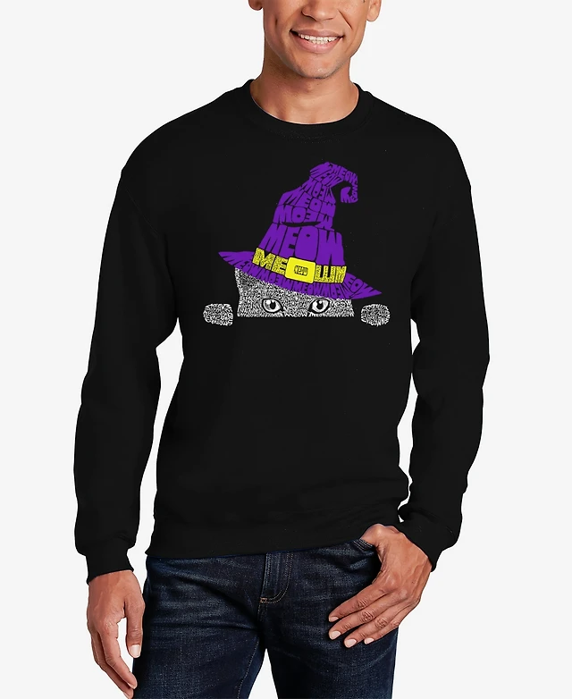 La Pop Art Men's Peeking Witch Cat Word Crewneck Sweatshirt