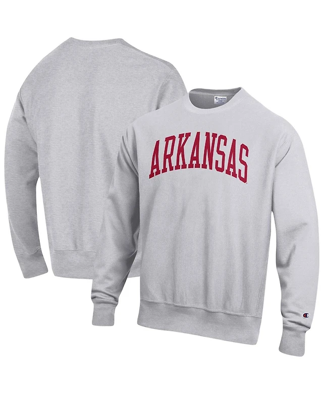 Men's Champion Ash Arkansas Razorbacks Big and Tall Reverse Weave Fleece Crewneck Pullover Sweatshirt