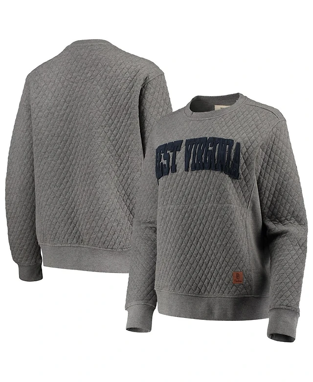 Women's Pressbox Heathered Gray West Virginia Mountaineers Moose Applique Quilted Crewneck Sweatshirt