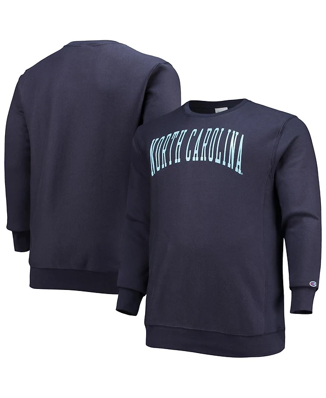 Men's Champion Navy North Carolina Tar Heels Big and Tall Reverse Weave Fleece Crewneck Pullover Sweatshirt