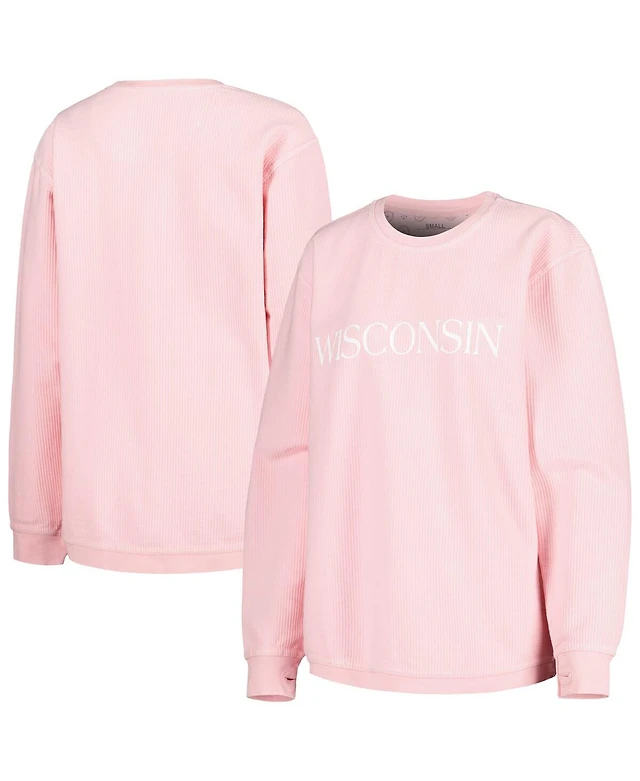 Women's Pressbox Pink Wisconsin Badgers Comfy Cord Bar Print Pullover Sweatshirt