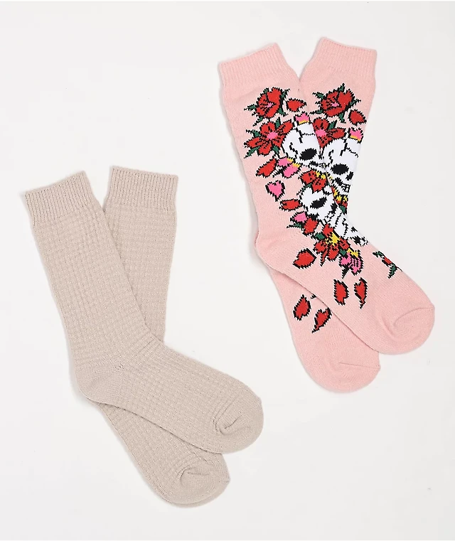 Ed Hardy Skull Pink & Waffle 2 Pack Crew Socks
