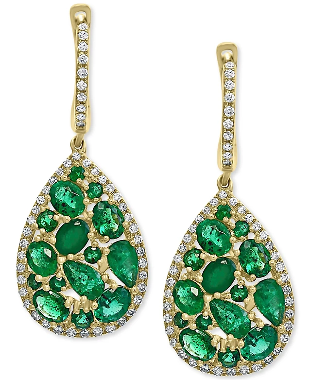 Effy Emerald (3-1/2 ct. t.w.) & Diamond (3/8 ct. t.w.) Drop Earrings in 14k Gold