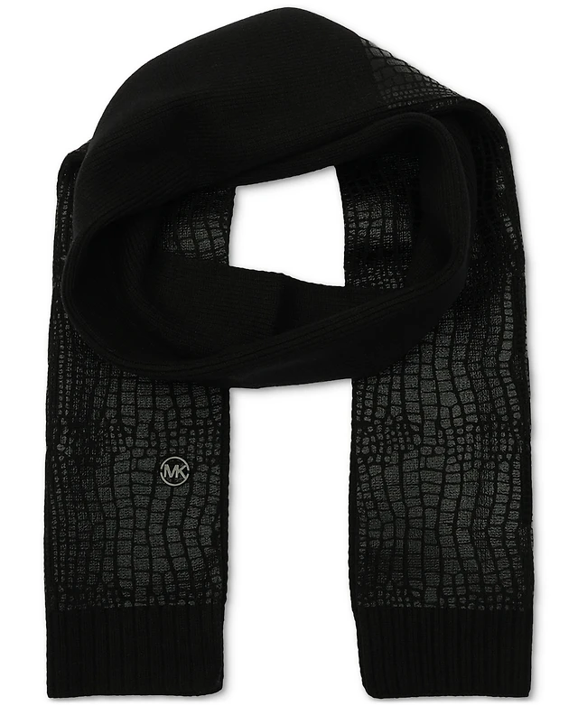Michael Michael Kors Logo Charm Ribbed Trim Croc-Embossed Scarf