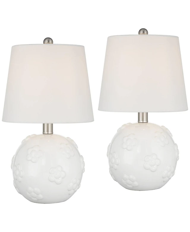 360 Lighting Karl Modern Table Lamps 27 1/2" Tall Set of 2 Brushed Nickel with Usb and Outlet White Drum Shade for Bedroom Living Room House Beds