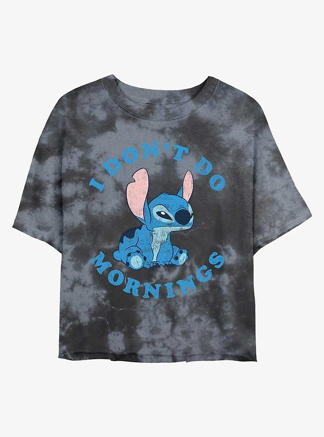Disney Lilo & Stitch I Don't Do Mornings Tie-Dye Girls Crop T-Shirt
