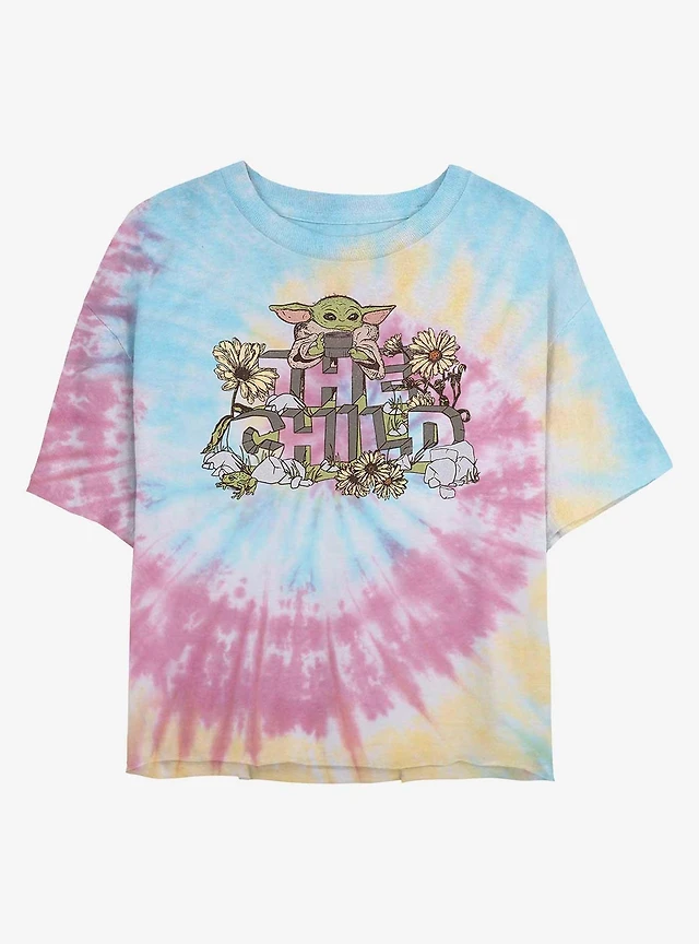 Star Wars The Mandalorian Flower Child Tie Dye Crop Girls T-Shirt