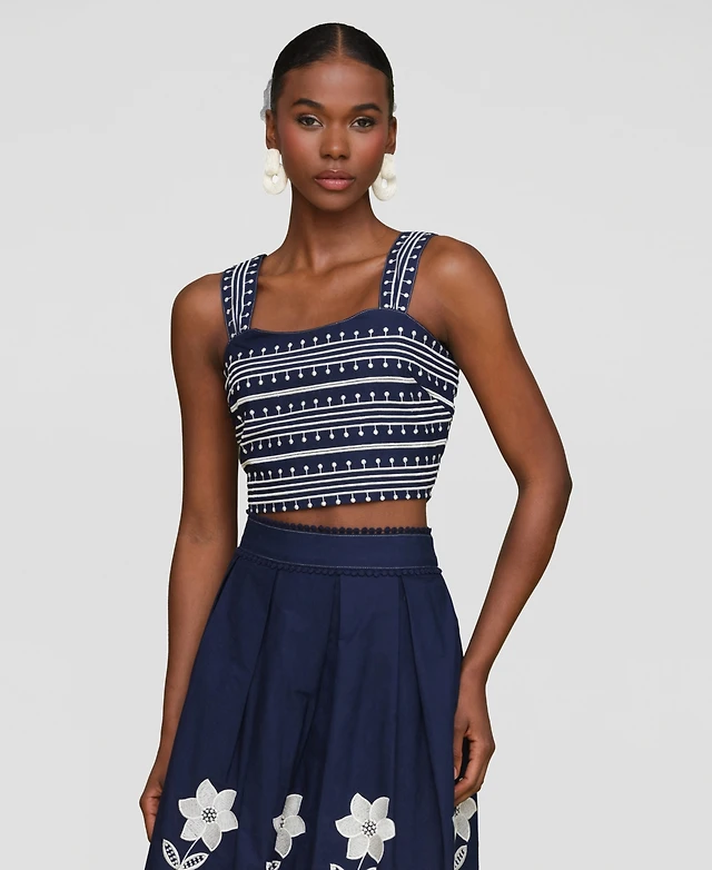 Beverly and Beck Paige Embroidered Pinstripe Tank Top