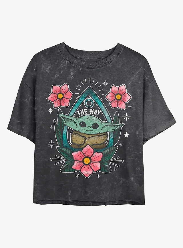 Star Wars The Mandalorian The Child Tarot Mineral Wash Crop Girls T-Shirt
