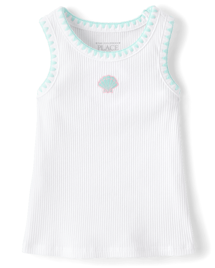 Baby And Toddler Girls Embroidered Icon Ribbed Tank Top