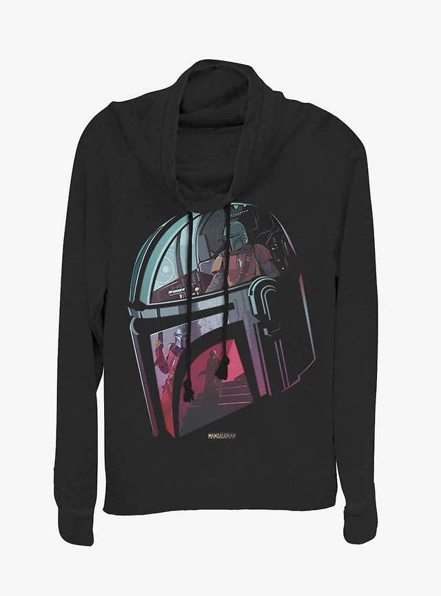 Star Wars The Mandalorian Helmet Explanation Cowl Neck Long-Sleeve Girls Top