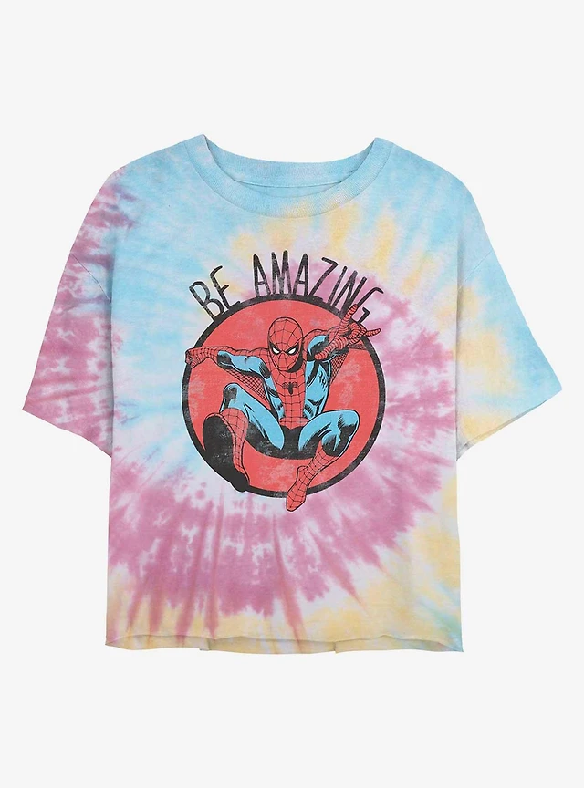 Marvel Spider-Man Urban Hero Tie Dye Crop Girls T-Shirt