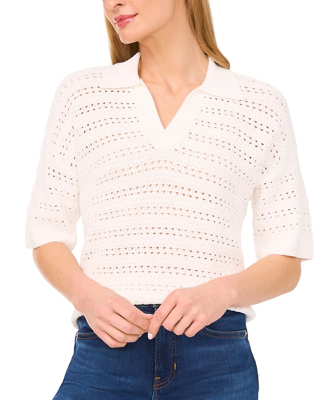 Dkny Women's Embellished-Neck Half-Sleeve Ribbed Sweater
