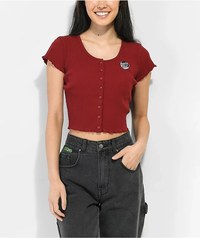 Miss Circle Women's Darla Burgundy Faux Fur Off-Shoulder Cropped Top