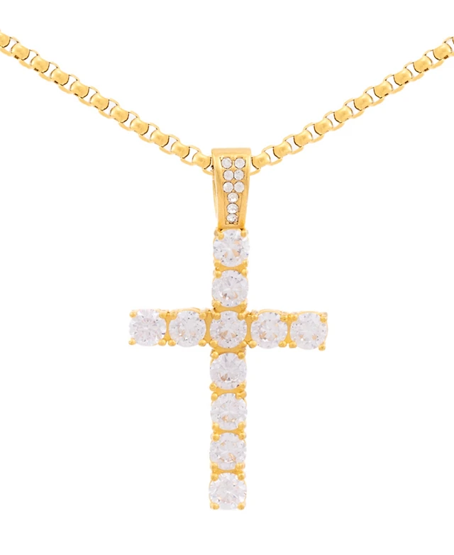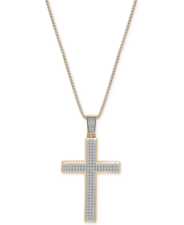 Men's Diamond Cross 22" Pendant Necklace (1/2 ct. t.w.) in 18k Gold-Plated Sterling Silver