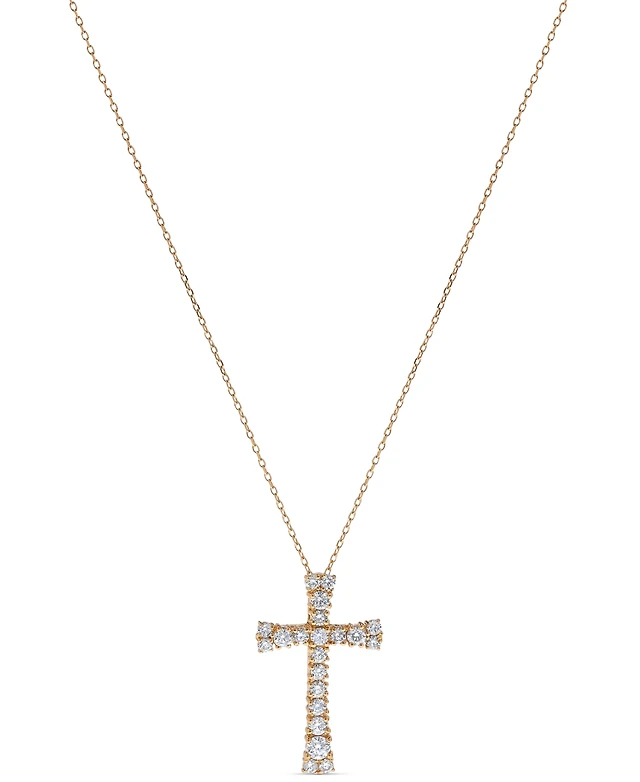 Diamond Cross Pendant Necklace (1 ct. t.w.) 14k White or Yellow Gold, 16" + 2" extender