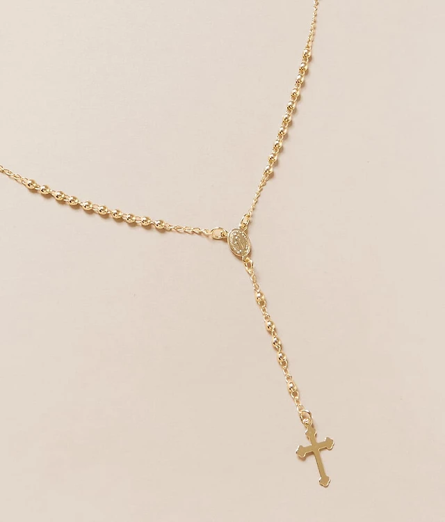 Rosary Necklace in 10K Tri-Tone Gold - 20"