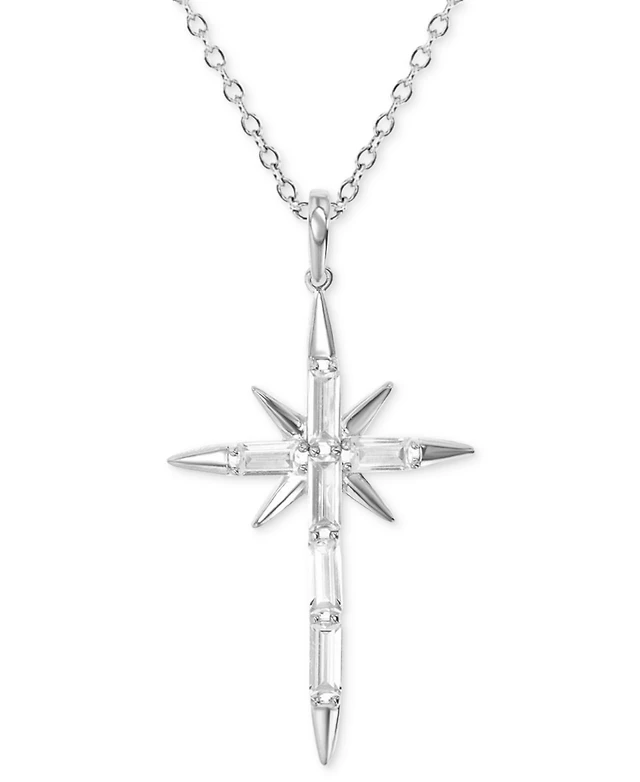 Giani Bernini Cubic Zirconia Baguette & Round Cross Pendant Necklace, 16" + 2" extender, Created for Macy's