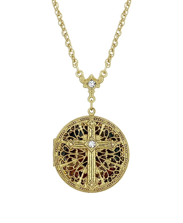 Pewter Crystal Cross Silver-Tone Chain Necklace
