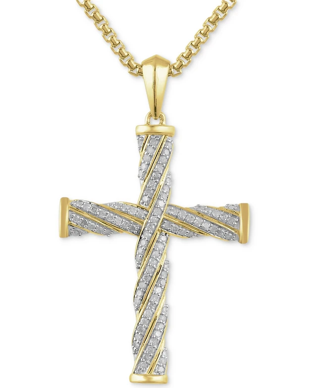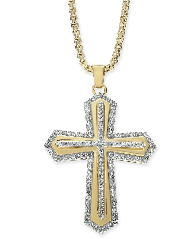 Men's Diamond Cross 22" Pendant Necklace (1/2 ct. t.w.) in 14k Gold-Plated Sterling Silver