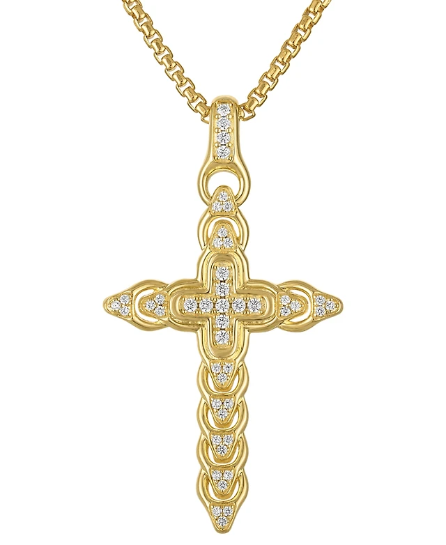 Men's Diamond Cross 22" Pendant Necklace (1/2 ct. t.w.) in 14k Gold-Plated Sterling Silver