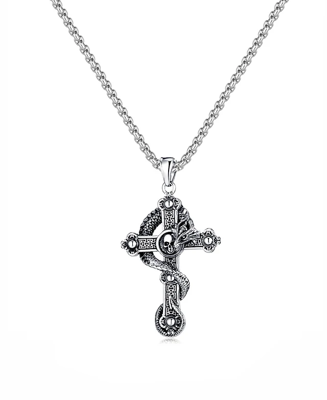 Esquire Men's Jewelry Diamond Accent Cross 22" Pendant Necklace in Stainless Steel & Black Ion-Plate, Created for Macy's