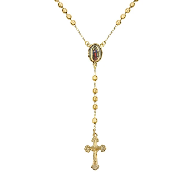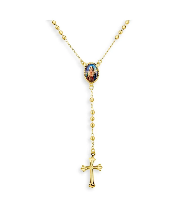 Bling Jewelry Dainty Religious Guardian Angel Rosary Necklace with White Simulated Pearls Gold Plated Brass