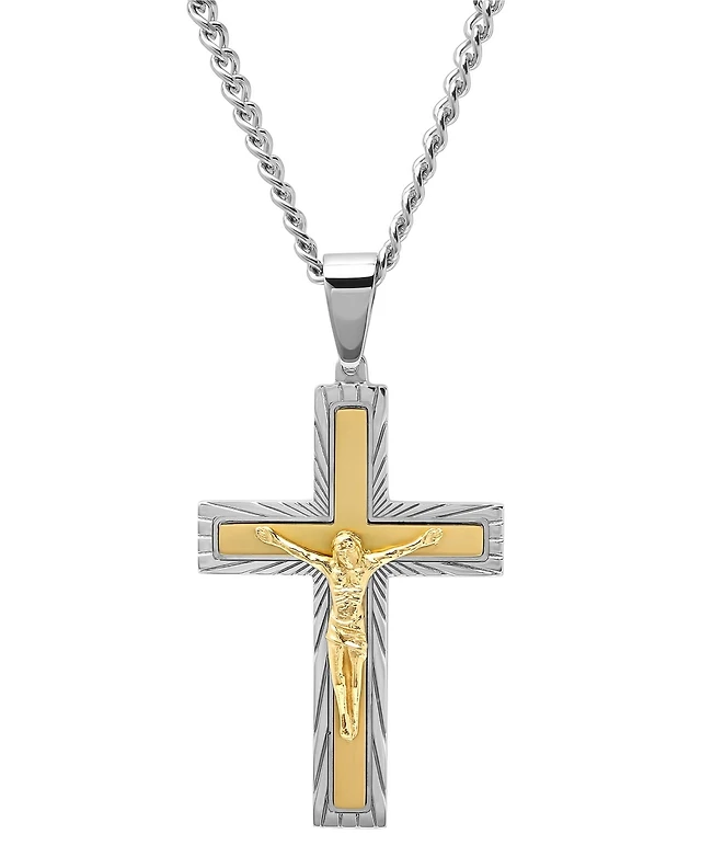 Men's Large Grooved Cross Pendant in Two-Tone Stainless Steel - 30"