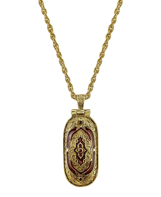 14K Gold-Dipped Red Enamel Swing Open Pendant Enclosed Crucifix Necklace