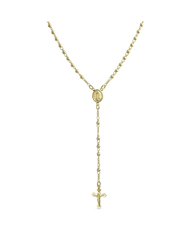 Bling Jewelry Two Tone Virgin Mary Rosary Prayer Round Ball Beaded Link Chain Jesus Crucifix Gold Plated Stainless Steel