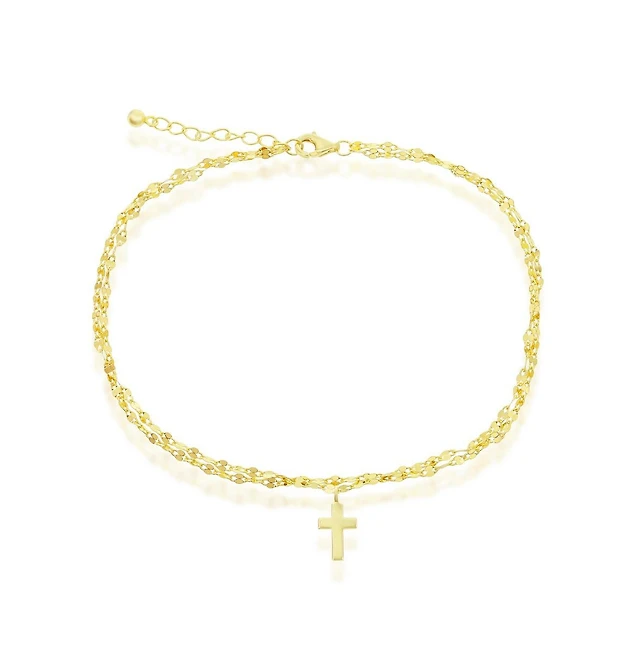 Simona Sterling Silver Double Strand Mirror Chain w/ Cross Anklet